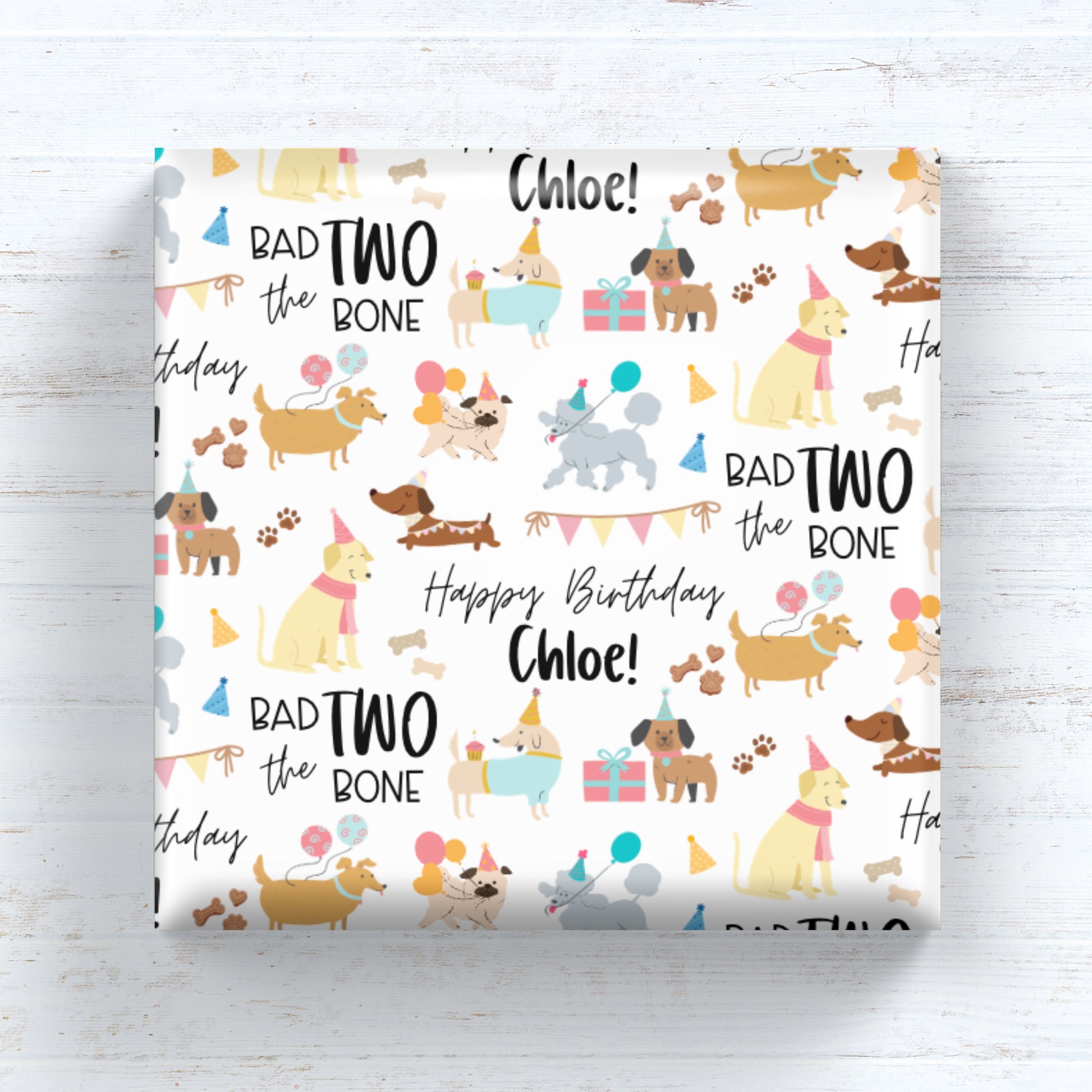 Bad Two The Bone - Puppy - Personalized 2nd Birthday Gift Wrap