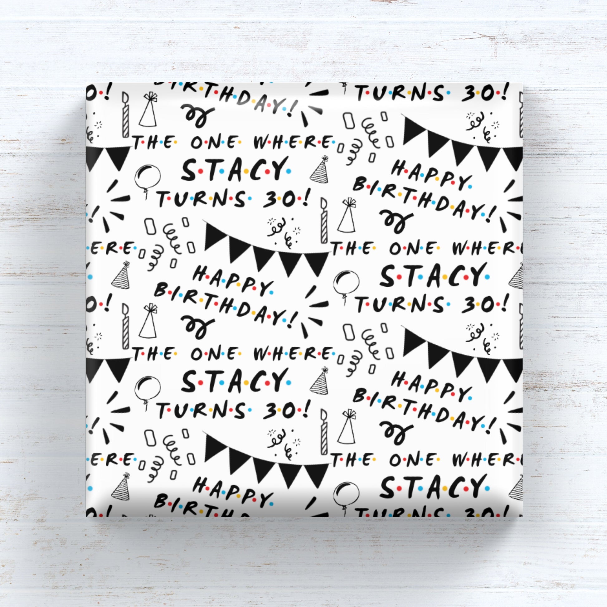 Celebrate their birthday with our nostalgic "Friends - Birthday" personalized gift wrap themed after the iconic TV show Friends. This fun design is perfect for milestone birthdays—because they'll be there for you when the birthday starts!
