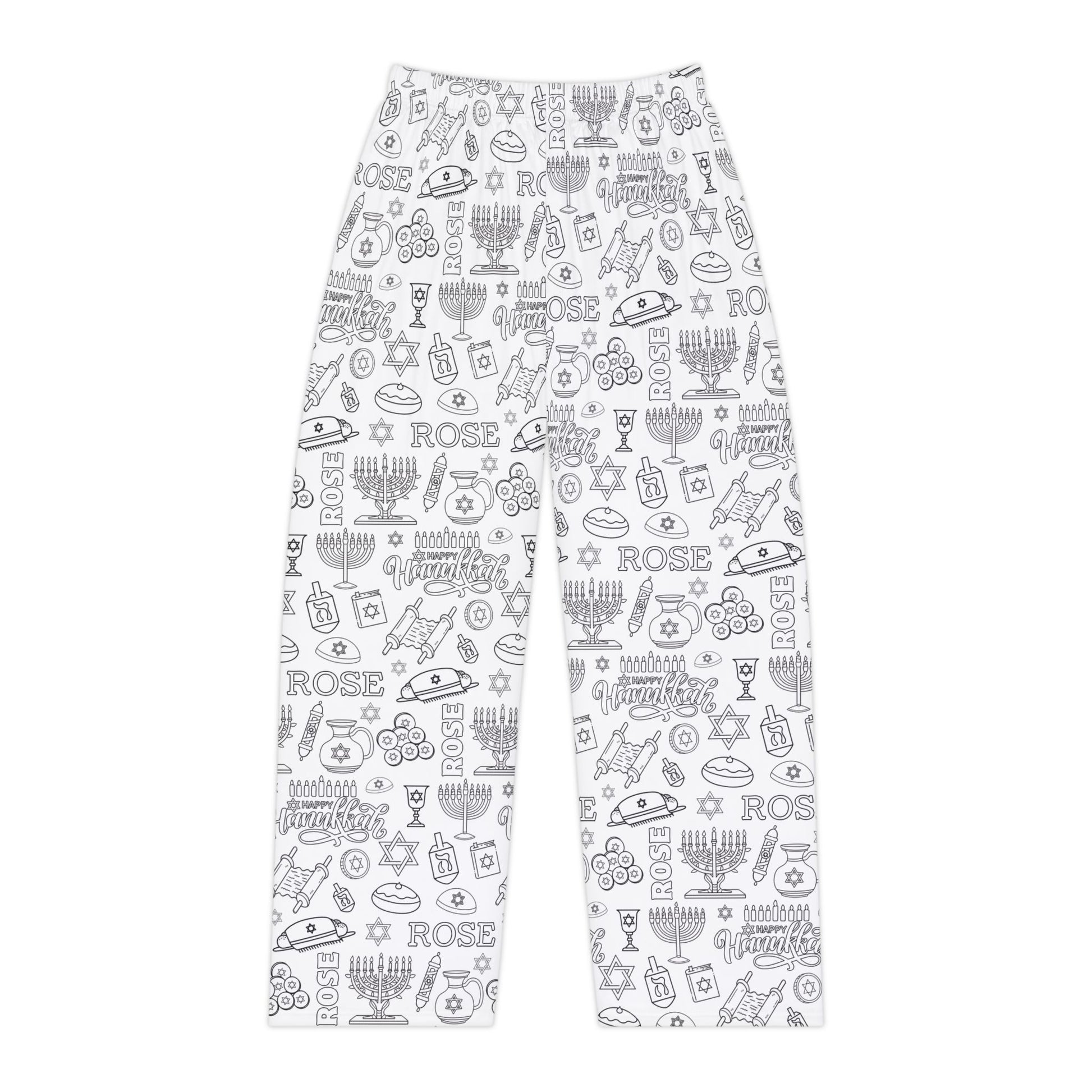 Get cozy, get creative, and celebrate the Festival of Lights in artistic style! Our Hanukkah Color Your Own Adult Pajama Bottoms feature dreidels, menorahs, gelt, stars, and festive doodles ready for you to brighten with permanent or washable markers.